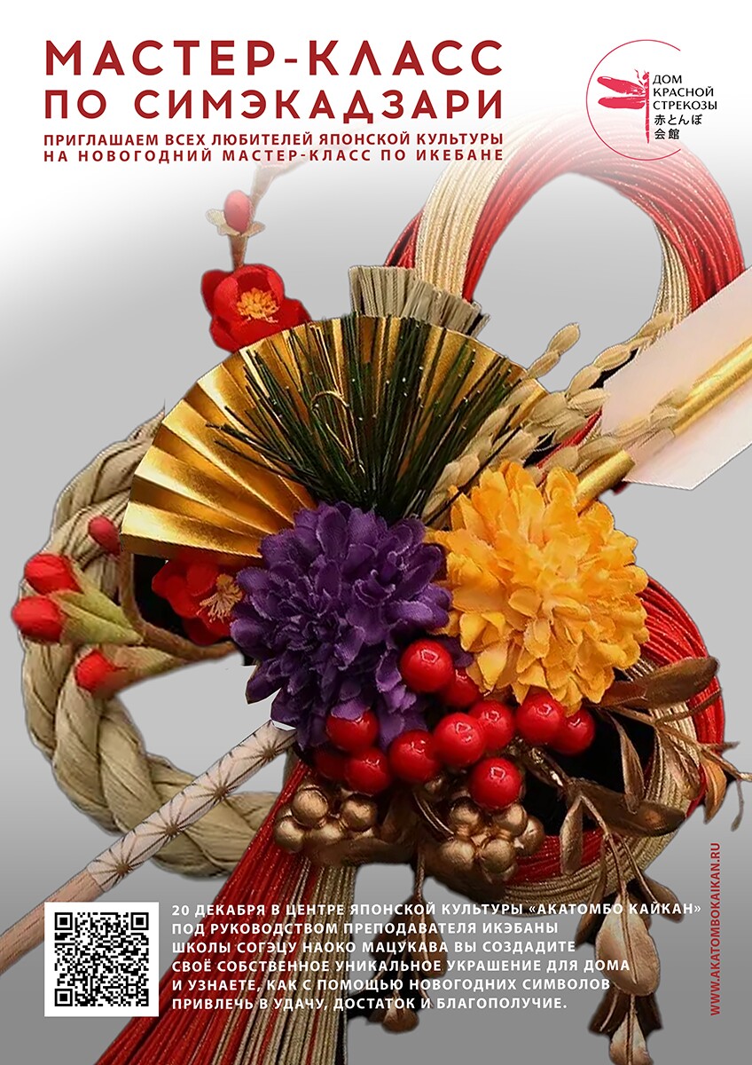 Приближается Новый год, и мы приглашаем вас создать атмосферу благополучия и удачи своими руками! 20 декабря в Центре японской культуры «Акатомбо кайкан» состоится особенный мастер-класс по созданию Симэкадзари (しめ飾り) — традиционного японского новогоднего оберега для двери.
